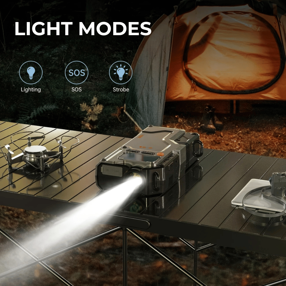 No more waiting for help. Jump start, inflate tires, charge devices, and light your way—all in one